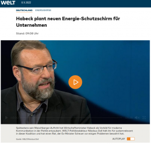WELTonline 9.9.2022: „Ist das Herrn Habeck letzte Nacht erst eingefallen?“, hakt Illner nach & PDF*