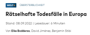 *Weil das Thema außerordentlich wichtig für die Fragestellung „Corona, Tod durch Impfung, Europa,Deutschland“ ist, zitieren wir den Text und den Kommentarauszug als PDF. Verweise und alle Kommentare der Leserschaft lesen Sie komplett, wenn Sie WELTplus testen/abonnieren. Wir empfehlen WELTplus ausdrücklich: 30 Tage kostenlos/günstig testen.