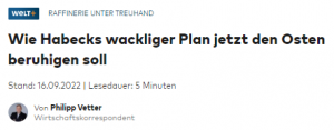 *Weil das Thema außerordentlich wichtig für die Fragestellung „Strom, Gas, Energie, Corona. Deutschland“ ist, zitieren wir den Text und den Kommentarauszug als PDF. Verweise und alle Kommentare der Leserschaft lesen Sie komplett, wenn Sie WELTplus testen/abonnieren. Wir empfehlen WELTplus ausdrücklich: 30 Tage kostenlos/günstig testen.