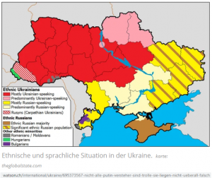 Ein russisch-stämmiger Mensch (Russe) wird nicht mit einem ukrainischen Pass ukrainisch-stämmig (Ukrainer). Wo welche Ethnien, wo Sprachmehrheiten sind und leben, zeigt die Karte oben. Die besetzten Gebiete decken sich weitgehend mit diesen Gegebenheiten. Die Karten erklären auch die Flüchtlingsbewegungen. Viel russisch-stämmige Menschen retten sich nach Russland. Weil die Ukrainer sie drangsalieren.