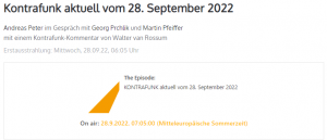 Mit dem Kinderliedermacher Martin Pfeifer spricht Moderator Andreas Peter über eine Tournee durch die Kindergärten, die den Kindern wieder die Freude aus der Vor-Corona-Zeit geben soll. Über juristische Aspekte des Impfens geht es im Gespräch mit dem Rechtsanwalt Georg Prchlik. Walter von Rossum beschäftigt sich in seinem Kommentar mit dem Buch von Ex-Gesundheitsminister Jens Spahn und in der Medienschau berichtet Oliver Holzer über neue Migrationswellen und dem neuesten Kotau von Friedrich Merz vor dem grünen Mainstream.