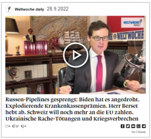 Russen-Pipelines gesprengt: Biden hat es angedroht. Explodierende Krankenkassenprämien. Herr Berset hebt ab. Schweiz will noch mehr an die EU zahlen. Ukrainische Rache-Tötungen und Kriegsverbrechen