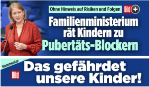 „Um Missverständnissen vorzubeugen, wurde der Text inzwischen so von der Redaktion angepasst, so dass eindeutig klar wird, dass ausschließlich Ärzte über die Notwendigkeit der Einnahme von Pubertätsblockern entscheiden“, teilte am Donnerstag das Bundesfamilienministerium mit.