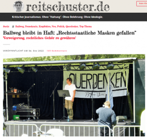 … die Michael Ballwegs Anwälte erheben. Und ebenso ungeheuerlich ist, dass keines der großen Medien sie aufgreift – und offenbar auch kaum ein kleines. Der Gründer von „Querdenken“ muss auch nach einem zweiten Haftverkündungstermin diese Woche in Untersuchungshaft bleiben. Die Entscheidung fiel nach Angaben der Anwälte unter obskuren Umständen.