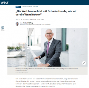 …Im Interview mit WELT sagt er, warum es für die EZB ein Glücksfall ist, dass kaum ein Bürger dieVerantwortung für die Inflation bei ihr sieht, warum die Energiewende gescheitert ist – und warum uns die Einführung einer neuen EU-Finanzarchitektur durch die Hintertür droht.