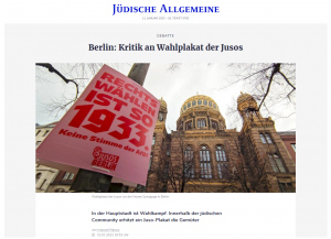 Politische Kultur & Berlin & SPD / Jusos & Wahl aktuell: Sogar die jüdische Gemeinde findet das Wahlplakat grenzwertig …