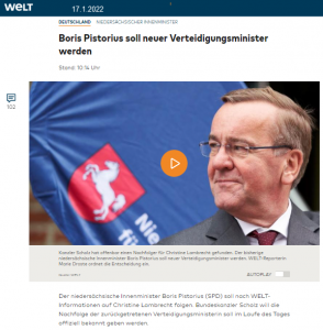 Russland & Ukraine & Verteidigungsminister aktuell: Boris Pistorius wird Verteidigungsminister … Update 11:23 Uhr Boris Pistorius wird es ________ Quelle ________ Zu Boris Pistorius Google – Recherche: War Boris Pistorius bei der Bundeswehr ________ Nachlese zu Christine Lambrecht