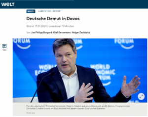 … und Finanzminister Christian Lindner geben sich beide Vertreter des Bundeskanzlers beim Weltwirtschaftsforum in Davos erstaunlich kleinmütig und unkoordiniert. Werbung für den Standort Deutschland sieht anders aus.