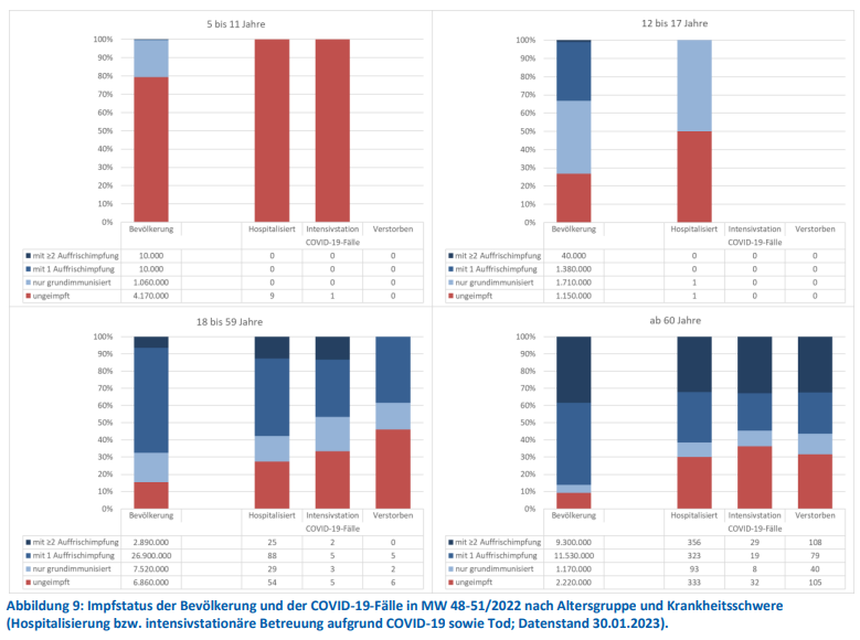 Monitoring RKI vom 2.2.2023, Seite 16 (Abb. rechts) aufgeführt. Das sind die tatsächlichen Corona-Fälle, die eben nicht nur einen positiven Test neben einer anderen schweren Erkrankung haben, die zum Krankenhausaufenthalt führte.