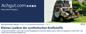 Die Synthese von Benzin und Diesel ist über 100 Jahre Stand der Technik. Schon die Nationalsozialisten haben ihren Krieg mangels Ölvorkommen mit „verflüssigter“ Kohle geführt. Südafrika hat aus gleichen Gründen großtechnisch Benzin aus Kohle hergestellt. Heute kann man an vielen Tankstellen Diesel aus Erdgas kaufen.