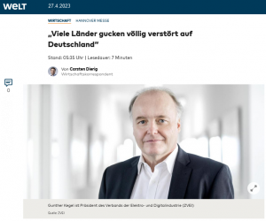 … um den Industriestandort Deutschland. Der Präsident des Elektrotechnik-Verbandes ZVEI sieht hierzulande eine gefährliche Deindustrialisierung. Im WELT-Interview spricht er über die Probleme der Industrie und warnt vor ideologischen Weltenrettern.