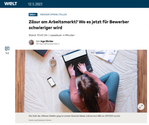 … Bewerber – ob Berufseinsteiger oder Jobwechsler – konnten sich in Deutschland lange auf der Gewinnerseite wähnen. Seit mehr als zehn Jahren kannte die Zahl der offenen Stellen im Land vor allem eine Richtung: Es ging steil aufwärts. Zuletzt – nach einem kurzen Corona-Tief – immer steiler. Im vergangenen Winter meldete das Institut für Arbeitsmarkt und Berufsforschung (IAB) ein Allzeithoch von zwei Millionen offenen Stellen.