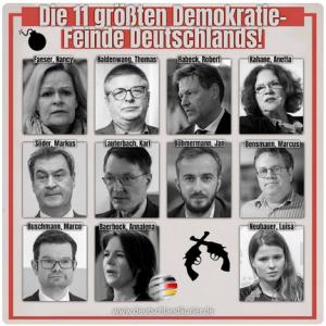 175 Jahre Paulskirche: Das sind die 11 größten Feinde der Demokratie heute! Aus gegebenem Anlass (175 Jahre Frankfurter Paulskirche, Wiege der Demokratie) ist es an der Zeit, auch Faeser, Haldenwang, Kahane & Co. angemessen zu „würdigen“. Ein Ranking, das den sprichwörtlichen „Boden der freiheitlich-demokratischen Grundordnung“ wahrlich erschüttern dürfte!