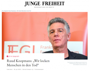 … nicht die Folge eines zu repressiven, sondern eines zu liberalen Asylsystems? Das zeigt der Soziologe Ruud Koopmans in seinem neuen Buch und fordert im Interview mit der JUNGEN FREIHEIT dringend eine Reform.