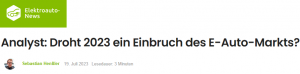 wenn man den Absatz von E-Autos am europäischen Elektroautomarkt betrachtet. Insbesondere in Deutschland – aufwärts. Aber der Schein trügt, wie Automobil-Analyst Matthias Schmidt findet. Geht es nach seiner letzten Analyse, muss der europäische Elektroautomarkt mit einem Absatzrückgang und damit verbundenen weiteren Preisreduzierungsrunden rechnen.