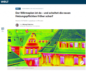 Wo künftig ein fertiger Wärmenetzplan vorliegt, gelten dann – teilweise noch mit Übergangsfristen – die neuen Regeln aus dem Gebäudeenergiegesetz, und Bürger und Unternehmen müssen ihre Immobilien entweder an Fernwärme anschließen oder bei der nächsten neuen Heizung dafür sorgen, dass diese zu mindestens 65 Prozent aus erneuerbaren Energien gespeist wird. Nicht zuletzt für Unternehmen der Wohnungswirtschaft ist es wichtig zu wissen, ob sie in den nächsten Jahren mit einem Fernwärme-Anschluss rechnen können oder mit der Planung für teure Großwärmepumpen oder andere Anlagen beginnen müssen.