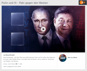 Putin / Russland & Xi / China & ZDF & Propaganda & Hetze aktuell: Eine ´Dokumentation` zum Fremdschämen Hören und sehen Sie, was Roger Köppel … …in der Internationalen Ausgabe von WELTWOCHE daily 26.7.2023 sagt: https://www.mediagnose.de/wp-content/uploads/2023/07/Koeppel_ZDF_Putin_XI_26072023.mp4 ________ Die komplette ´Dokumentation`, die kritisiert wurde: Zur Originalseite des ZDF
