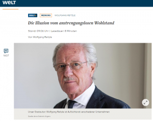Aktuell erscheint ein Artikel von Prof. Reitzle bei WELTonline