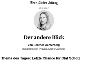 Der Kommentar wurde im Newsletter der NZZ vom 20.9.2023 an Rüdiger Stobbe geschickt und kann hier aufgerufen werden. Die PDF*