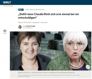 Birgit Ernst ist CDU-Politikerin in Gütersloh und hat im Kreistag gegen den Ausbau der NS-Gedenkstätte Stalag 326 gestimmt – wie auch die AfD. Nun steht das Vorhaben womöglich vor dem Scheitern. Kulturstaatsministerin Claudia Roth (Grüne) erhebt schwere Vorwürfe. Doch Ernst wehrt sich.