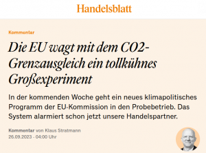 Im Oktober startet die Europäische Union ein großes Experiment mit ungewissem Ausgang: Der CO2-Grenzausgleich, im Fachjargon Carbon Border Adjustment Mechanism (CBAM) genannt, wird am 1. Oktober eingeführt. Dann verlangt Brüssel umfassende Berichtspflichten zum CO2-Fußabdruck von Importeuren, die Eisen und Stahl, Eisenerz, Aluminium, Zement, Ammoniak, Kaliumnitrat, Wasserstoff und Elektrizität einführen wollen.