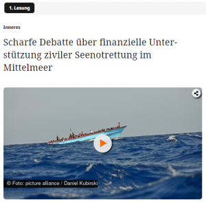 In der Debatte kritisierte Stephan Brandner (AfD), ein „dubioses Geflecht aus kriminellen Vereinigungen in Deutschland, staatlichen und nichtstaatlichen Organisationen, Kirchenvereinen und sogenannten Rettungsschiffen“ solle in den kommenden vier Jahren acht Millionen Euro erhalten. Es sei aber durch nichts zu rechtfertigen, Schleuser und Menschenhändler im Mittelmeer mit deutschen Steuermitteln zu finanzieren.
