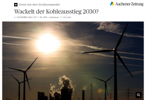 Die Aachener Zeitung bringt am 4.11.2023 einen ausführlichen Artikel von GEORG MÜLLER-SIECZKAREK, der sich mit den Bedenken zum geplanten Kohleausstieg 2030 beschäftigt. Weil dieser Artikel zeitgeschichtlich und energiepolitisch relevant ist, stellen wir den Plus-Artikel – neben dem Zitat und dem Ausschnitt – sowie die Leserkommentare – als PDF zur Verfügung. Wir danken der Aachener Zeitung und empfehlen Sie ausdrücklich. Auch und gerade als Abonnement.