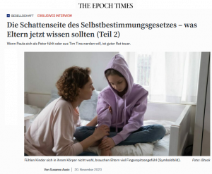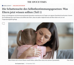 *Weil das Thema zeitgeschichtlich außerordentlich wichtig für die Fragestellung „Selbstbestimmungsgesetz 2023 u.v.m. “ ist, zitieren wir den Text als PDF und einen Teil der Leserkommentare ebenfalls als PDF. Verweise und alle Kommentare der Leserschaft lesen Sie, wenn Sie Epochtimesplus testen/abonnieren. Wir empfehlen Epochtimesplus ausdrücklich: Neukundenangebot