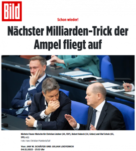 Im Klartext: SPD, Grüne und FDP missachten erneut die im Grundgesetz verankerte Schuldenbremse. Verfassungsbruch!