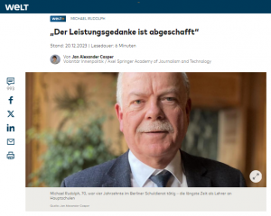Gewalt an Schulen, massenhaft Fehltage und arbeitsmarktuntaugliche Schulabgänger: In seinen Jahrzehnten als Berliner Hauptschullehrer und Schulleiter hat Michael Rudolph all das erlebt. Und: Ein Erfolgsrezept dagegen gefunden. Schulinspektoren der Hauptstadt hat er damit „hoch irritiert“.