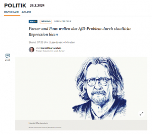… das Feindbild vieler aus meiner Generation, kommt zurück. Das zeigen die Pläne der Ministerinnen Faeser und Paus. Denn: Statt die Ursachen des Erstarkens anzugehen, bekämpfen sie die AfD mit Unterdrückung. Dazu schaffen sie gerade die nötigen Instrumente. …