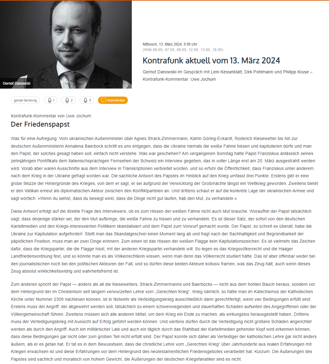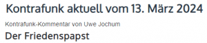 Ein exzellenter Kommentar von Uwe Jochum zum Verhandlungsaufruf des Papstes: