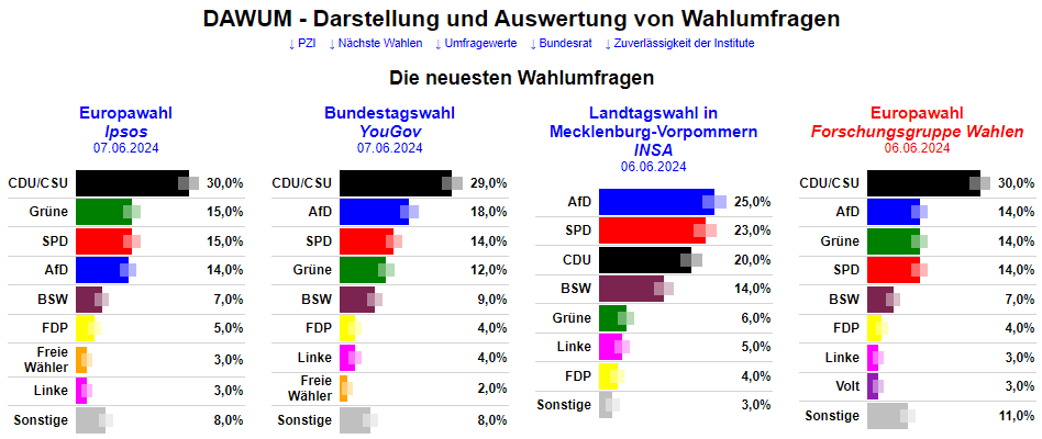 Vergrößern & Quelle/aktuelle Umfragen plus IPSOS EU-Wahl Spezial, YouGove Bundestag Spezial, INSA Meck-Pomm Spezial, FG Wahlen EU-Wahl Spezial