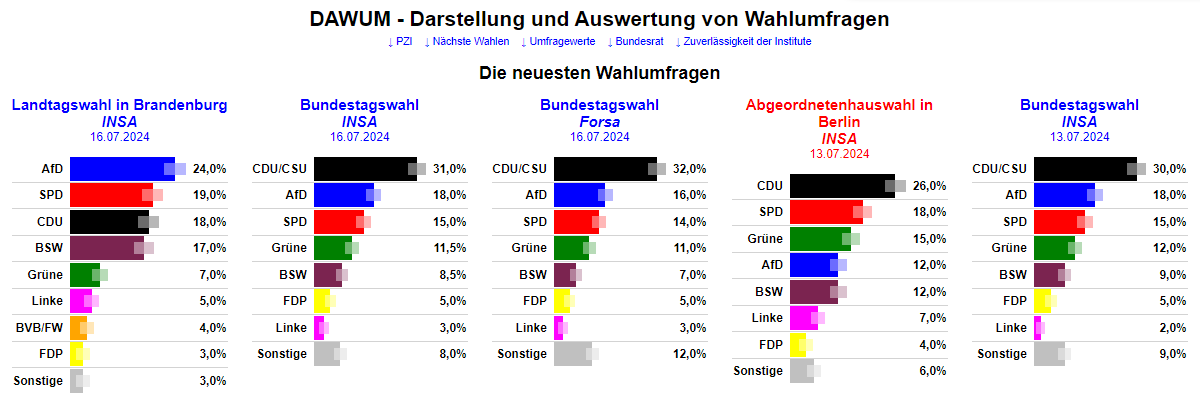 Vergrößern & Quelle/aktuelle Umfragen plus INSA Brandenburg Spezial, INSA Bundestag Spezial, Forsa Bundestag Spezial, INSA AH Berlin Spezial, INSA Bundestag Spezial