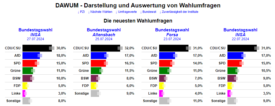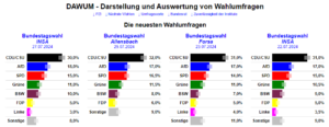 Vergrößern & Quelle/aktuelle Umfragen plus INSA Bundestag Spezial II , Allensbach Bundestag Spezial, Forsa Bundestag Spezial , INSA Bundestag Spezial I