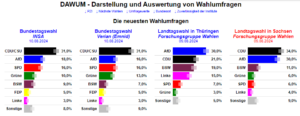 Vergrößern & Quelle/aktuelle Umfragen plus INSA Bundestag Spezial, Verian/Emnid Bundestag Spezial, FG Wahlen Thüringen Spezial, FG Wahlen Sachsen Spezial,