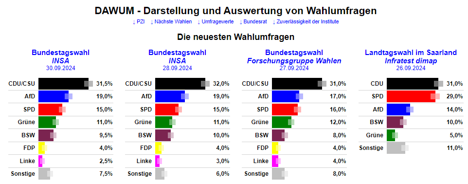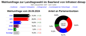 Umfrage-Schlaglicht Saarland: CDU überholt SPD – AfD legt zu – BSW auf Anhieb zweistellig – Grüne bei 5%