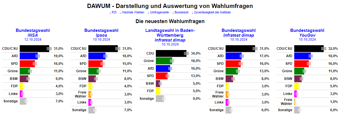 Vergrößern & Quelle/aktuelle Umfragen, INSA Bundestag Spezial, IPSOS Bundestag Spezial, INFRATEST dimap Baden-Württemberg Spezial, INFRATEST dimap Bundestag Spezial, YOUGOV Bundestag Spezial