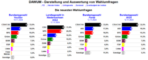 Vergrößern & Quelle/aktuelle Umfragen: YOUGOVE Bundestag Spezial, INSA Niedersachsen Spezial, FORSA Bundestag Spezial, INSA Bundestag Spezial
