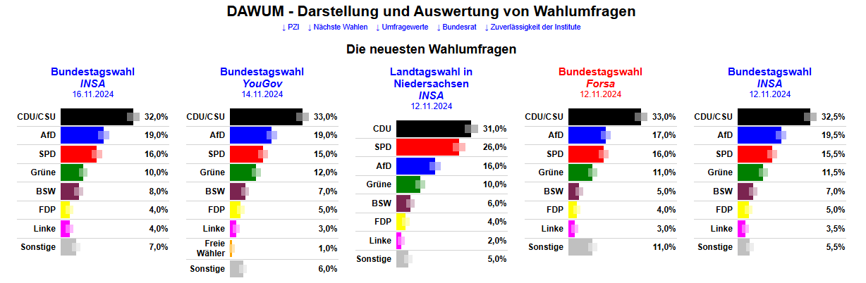 Vergrößern & Quelle/aktuelle Umfragen: INSA Bundestag Spezial II, YOUGOVE Bundestag Spezial, INSA Niedersachsen Spezial, FORSA Bundestag Spezial, INSA Bundestag Spezial I