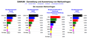 Vergrößern & Quelle/aktuelle Umfragen: FORSA NRW Spezial, INSA Bundestag Spezial II, Trend Research Hamburg Spezial, INSA Bundestag Spezial I