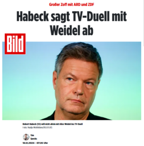 - Habeck weiß, dass er keine Ahnung hat, und deshalb gegen Alice keine Chance hätte!