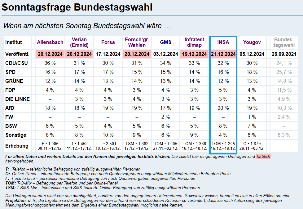 Quelle/aktuelle Umfragen plus Verlauf INSA