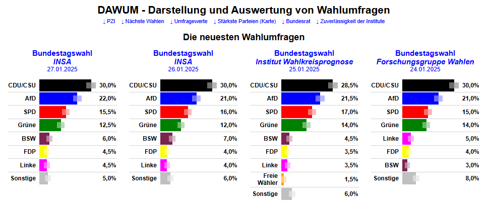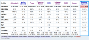 US-Umfrage: Union 27 Prozent – AfD 25 – SPD 15 – Grüne 13 – BSW sechs – FDP wie Linke fünf