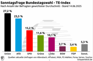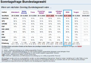 In der aktuellen Sonntagsfrage gibt es zwei Gewinner. Bemerkenswert ist die Sitzverteilung. Hier ergibt sich eine Überraschung für die AfD. […]