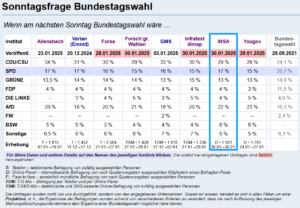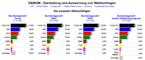 Vergrößerung – Quelle/Umfragen aktuell: INSA Bundestag Spezial II & INSA Agh Berlin & Forsa Bundestag Spezial & INSA Bundestag Spezial I