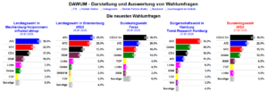 Vergrößern & Quelle/aktuelle Umfragen: Infratest dimap Mecklenburg Vorpommern Spezial, INSA Brandenburg Spezial, FORSA Bundestag Spezial Trendresaerch Hamburg Senat Hamburg Spezial, INSA Bundestag Spezial,