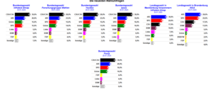Vergrößern & Quelle/aktuelle Umfragen: INFRATEST dimap Bundestag Spezial, FG Wahlen Bundestag Spezial, YouGove Bundestag Spezial, IPSOS Bundestag Spezial, Infratest dimap Mecklenburg Vorpommern Spezial, INSA Brandenburg Spezial, FORSA Bundestag Spezial