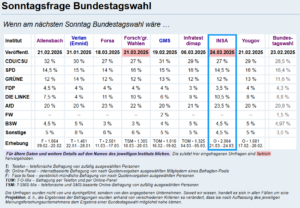 Vergrößerung – Quelle/Umfragen aktuell:GMS Bundestag Spezial & GMS LT Bayern & Forsa Bundestag Spezial & INSA Bundestag Spezial