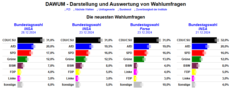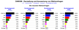 Vergrößern & Quelle/aktuelle Umfragen: INSA Bundestag Spezial II, INSA Bundestag Spezial I, FORSA Bundestag Spezial, INSA Bundestag Spezial